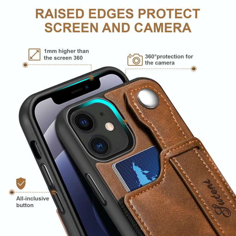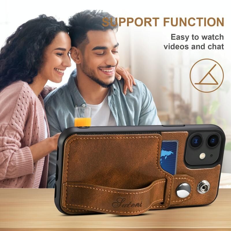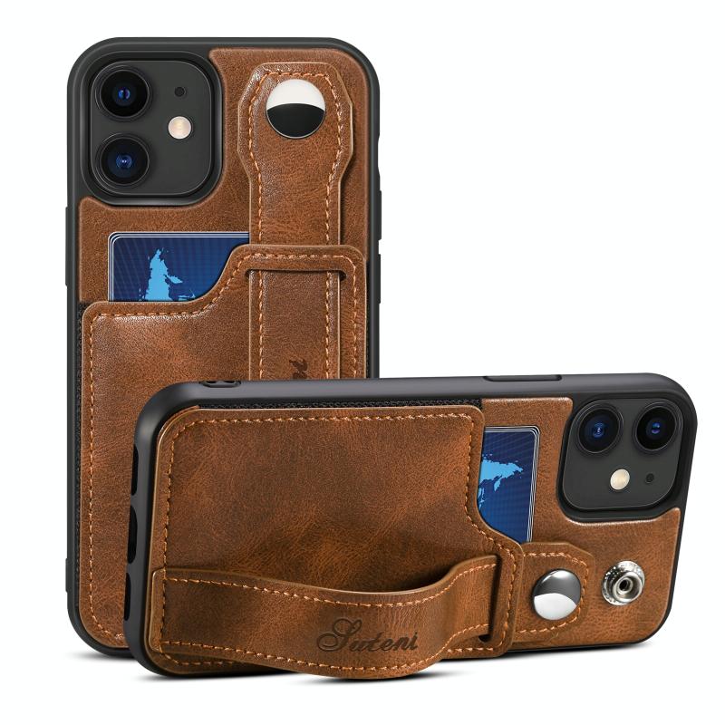 For iPhone 12 Suteni 215 Wrist Strap PU Phone Case(Brown) (Suteni)