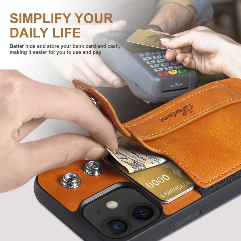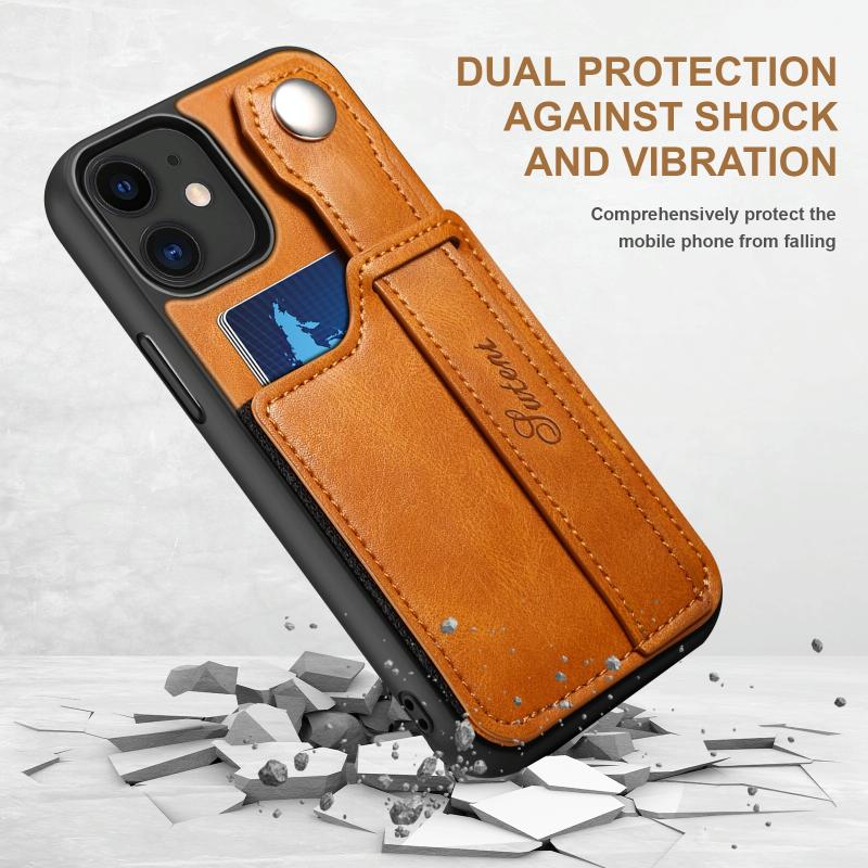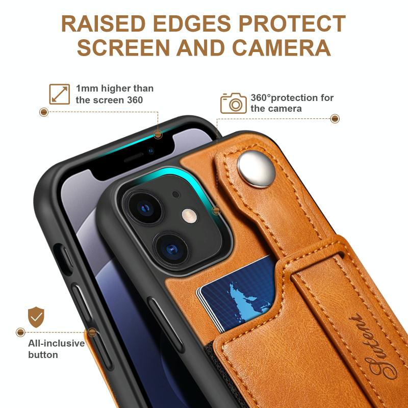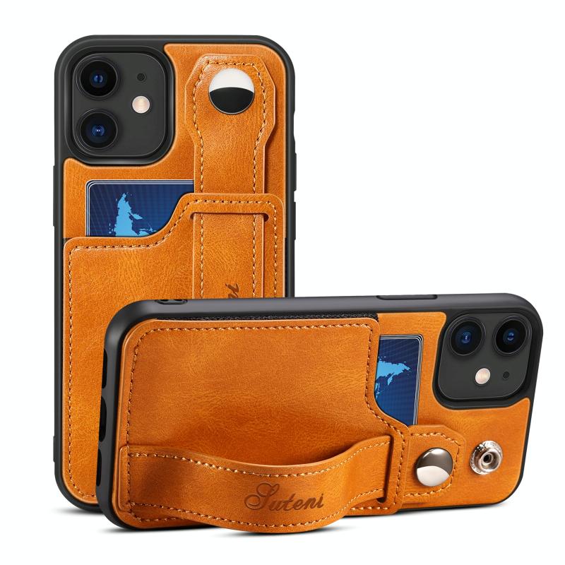 For iPhone 12 Suteni 215 Wrist Strap PU Phone Case(Khaki) (Suteni)