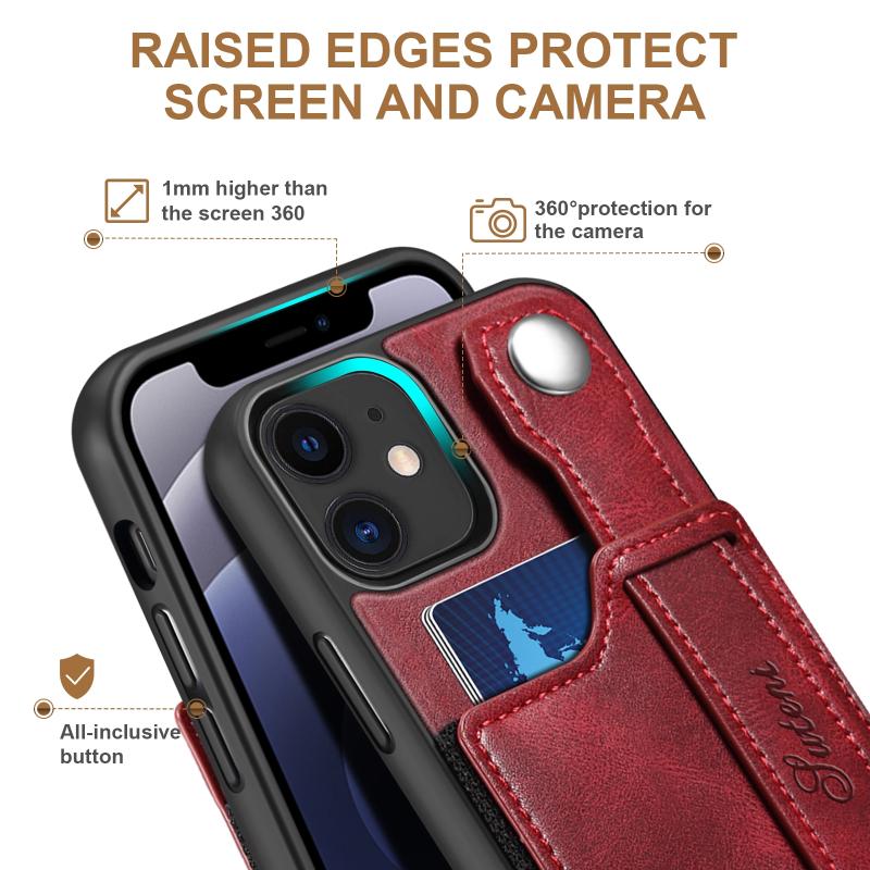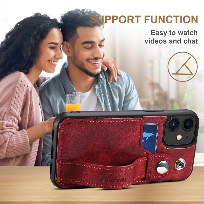 For iPhone 12 Suteni 215 Wrist Strap PU Phone Case(Red) (Suteni)