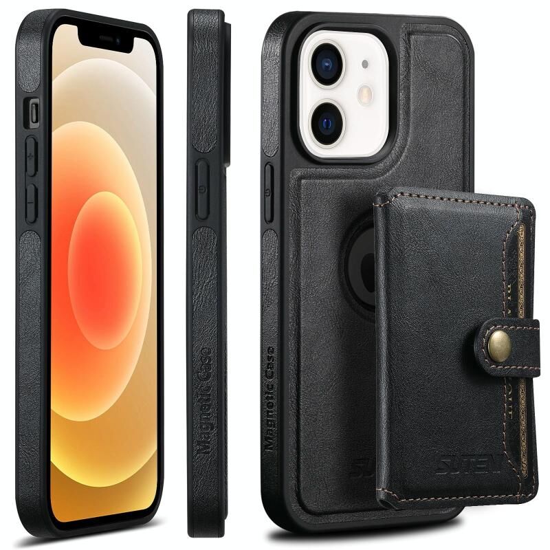 Θήκη τηλεφώνου για iPhone 12 Suteni M1 Oil Wax MagSafe αποσπώμενη οριζόντια θήκη καρτών (Μαύρο) (Suteni)