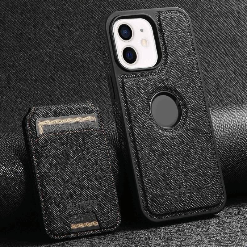 Θήκη τηλεφώνου με κάθετη θήκη καρτών MagSafe, με ανάγλυφη υφή, για iPhone 12 (Μαύρο) (Suteni)