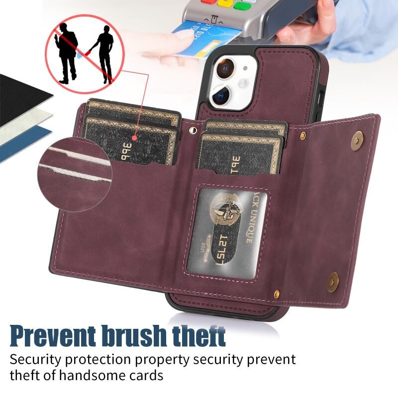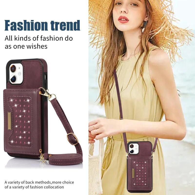 Θήκη τηλεφώνου από δέρμα με προστασία RFID για iPhone 12, τριπλή, με κορδόνι (Μαύρο)