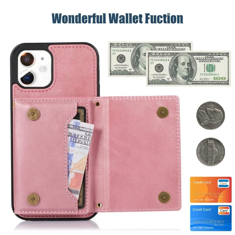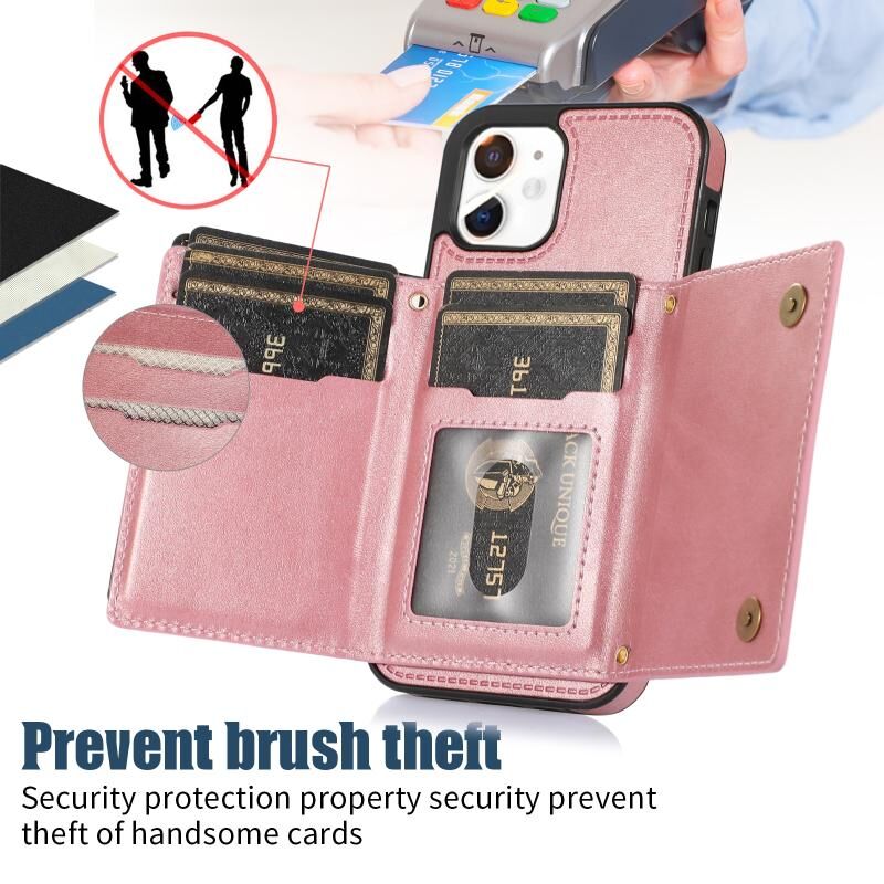 Θήκη τηλεφώνου από δέρμα με προστασία RFID για iPhone 12, τριπλή, με κορδόνι (Μαύρο)