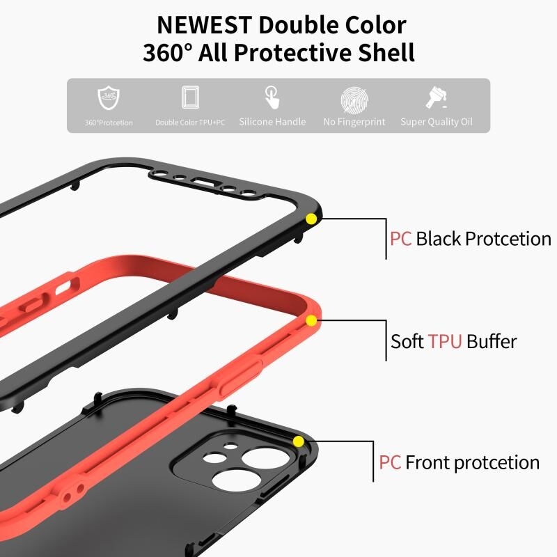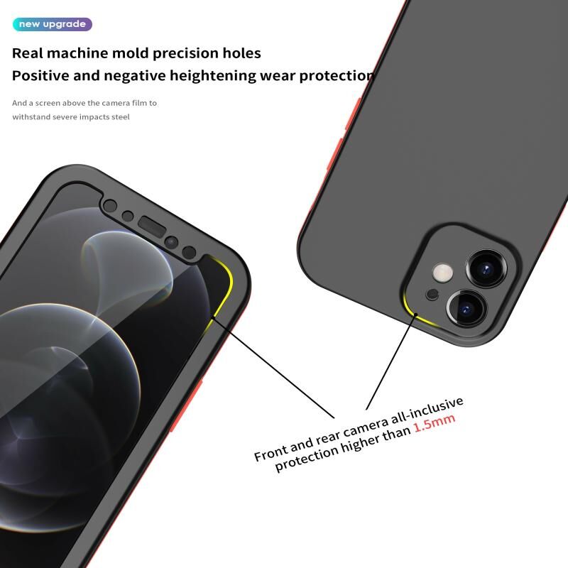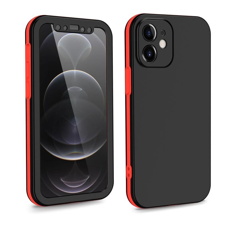 For iPhone 12 Two Color Full Protective 3-in-1 Phone Case(Black)