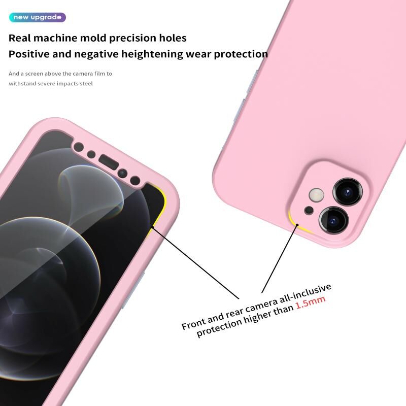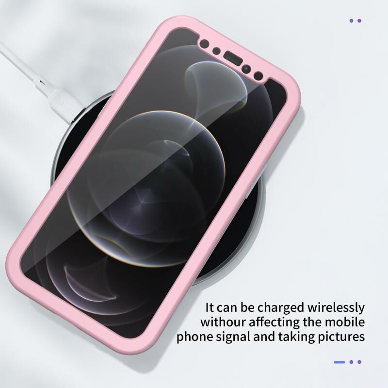 For iPhone 12 Two Color Full Protective 3-in-1 Phone Case(Pink)