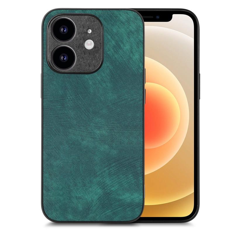 For iPhone 12 Vintage Leather PC Back Cover Phone Case(Green)