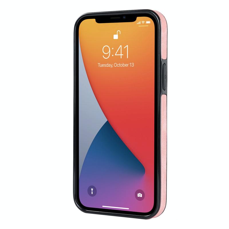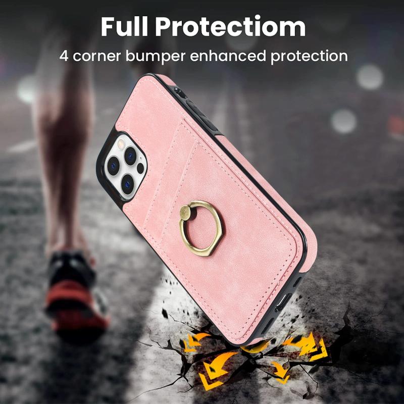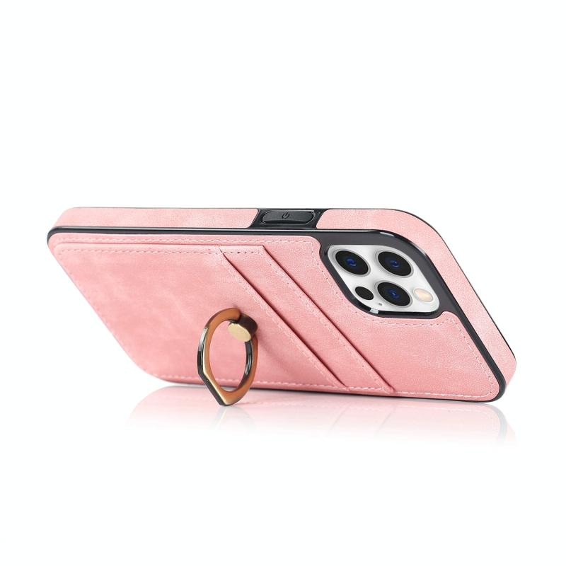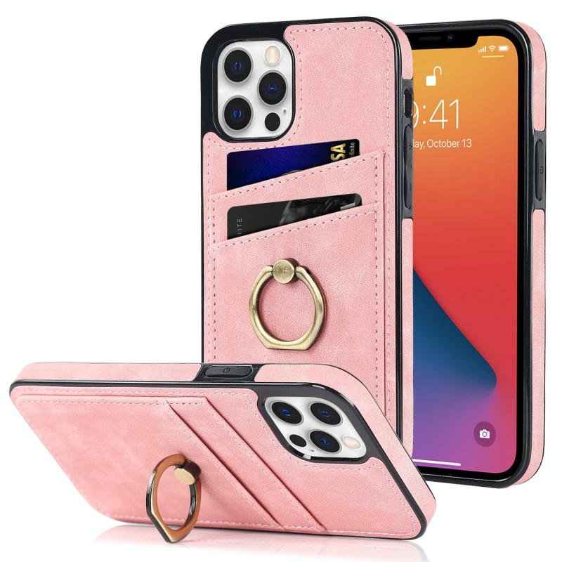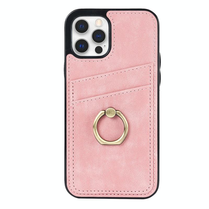 For iPhone 12 Vintage Patch Leather Phone Case with Ring Holder(Pink)