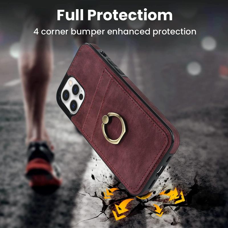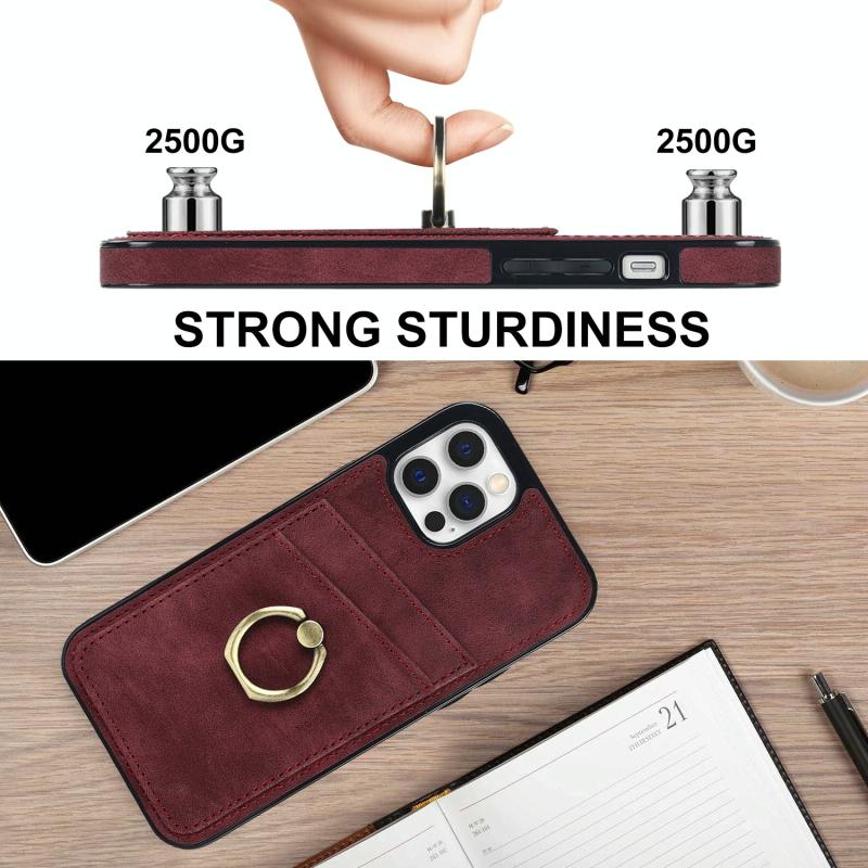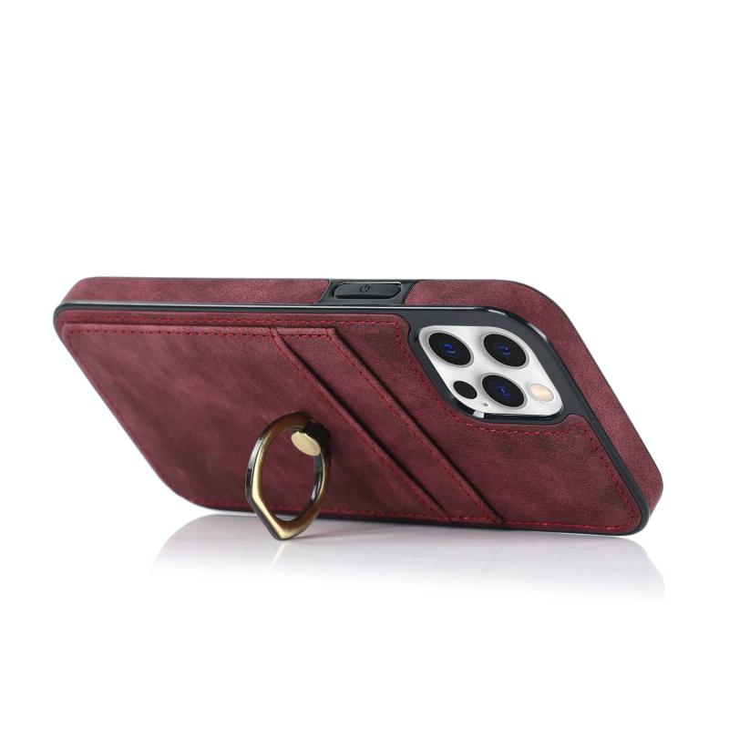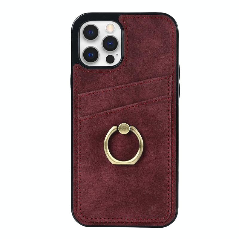 For iPhone 12 Vintage Patch Leather Phone Case with Ring Holder(Red)