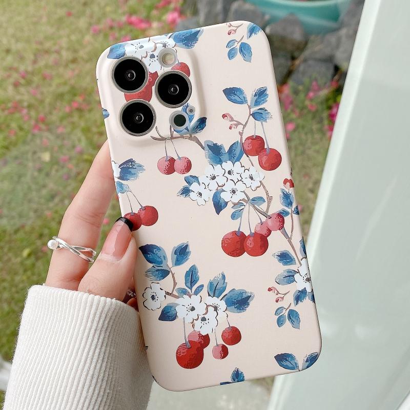 For iPhone 12 Water Sticker Flower Pattern PC Phone Case(Cherry)