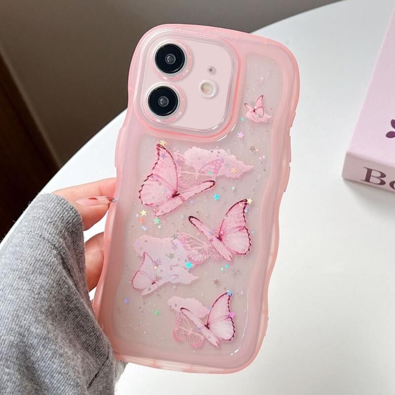 For iPhone 12 Wave Edge Butterfly TPU Hybrid PC Phone Case(Pink)
