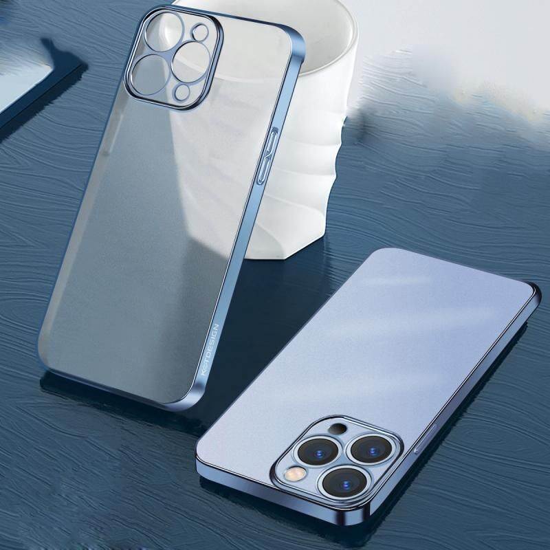 For iPhone 12 Wing Plating Series Semi-transparent Frosted Phone Case(Sierra Blue)