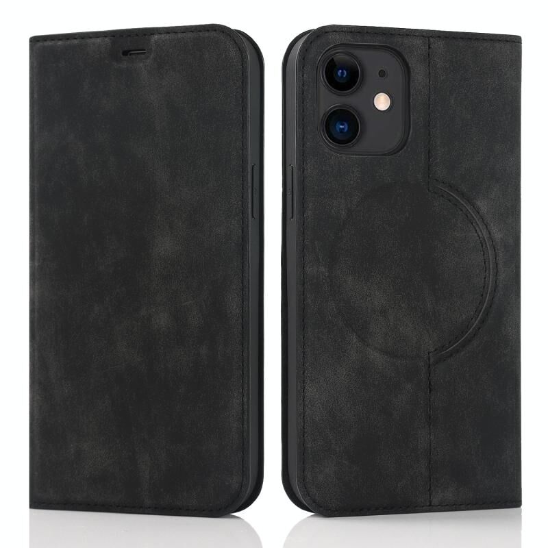 For iPhone 12 Wireless Charging Magsafe Leather Phone Case(Black)