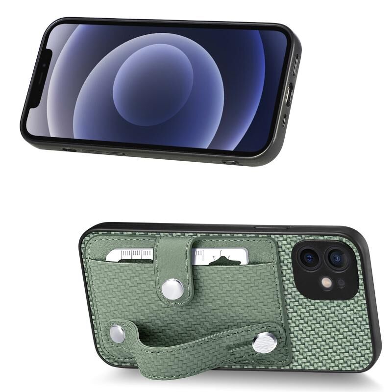 For iPhone 12 Wristband Kickstand Card Wallet Back Cover Phone Case with Tool Knife(Green)