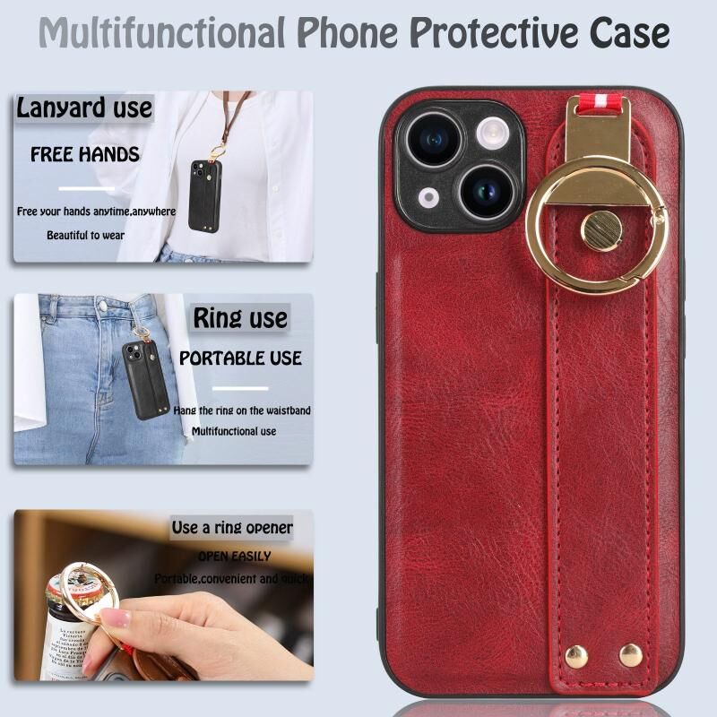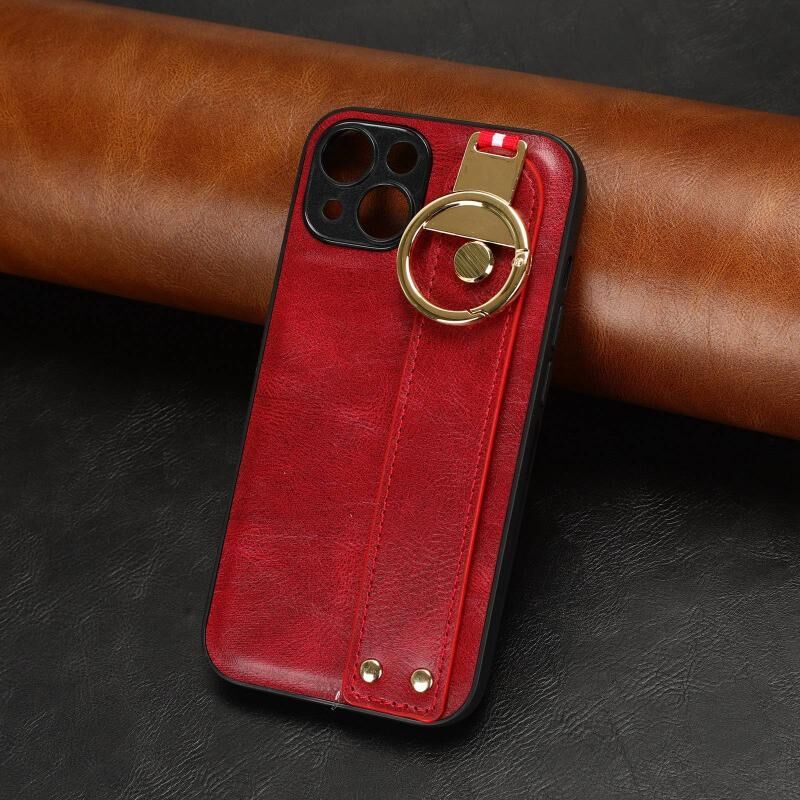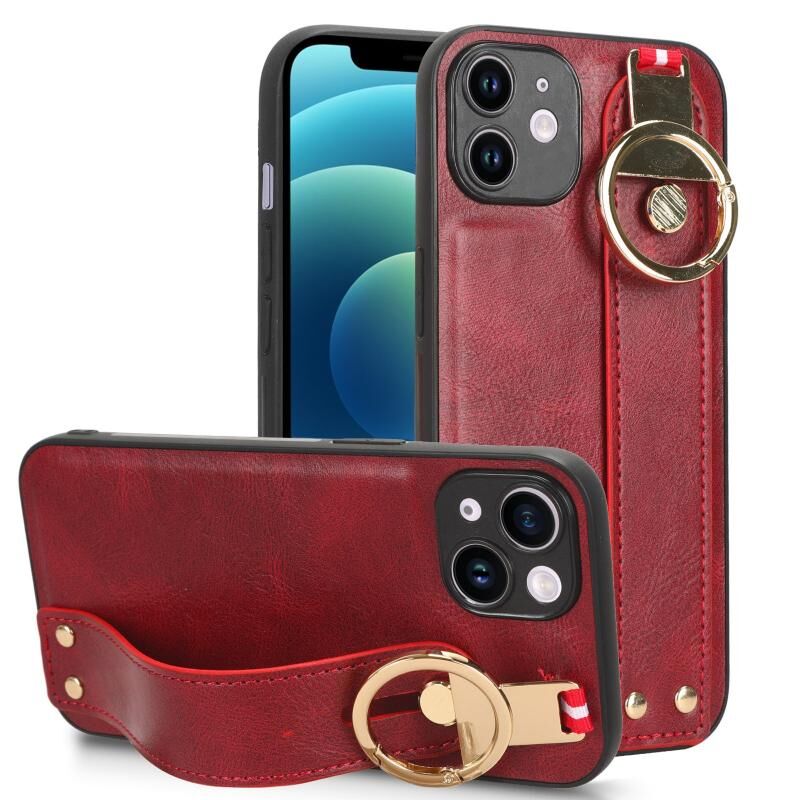 For iPhone 12 Wristband Leather Back Phone Case(Red)