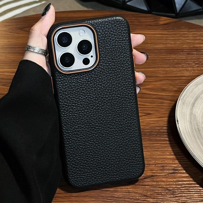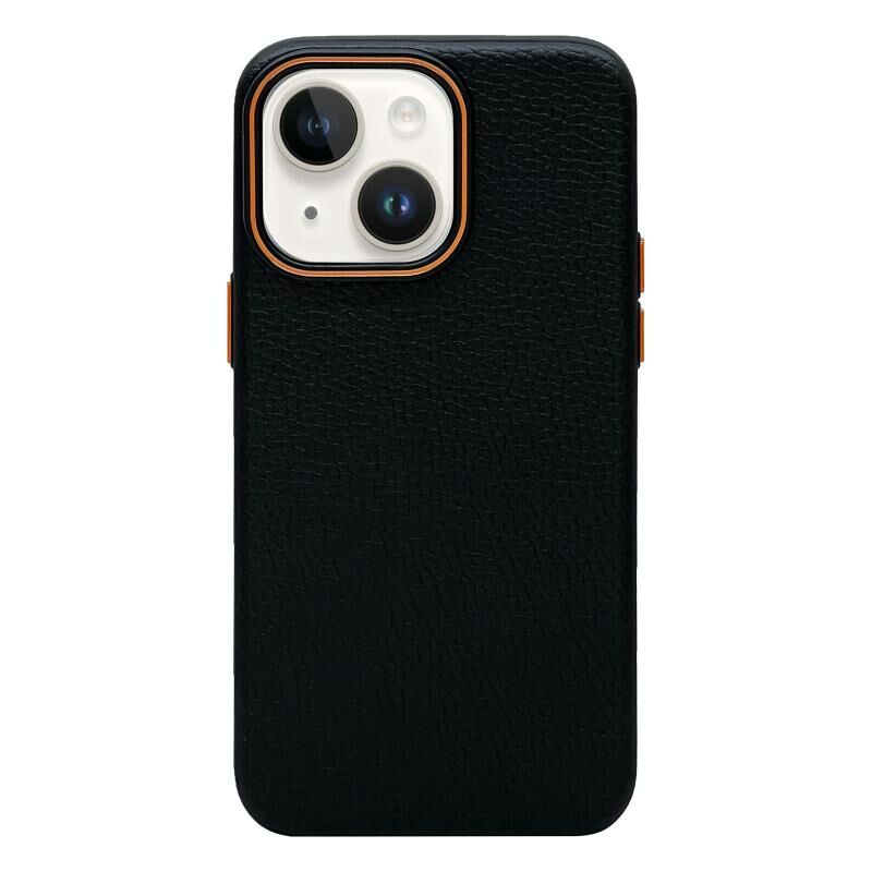 Θήκη TPU με Υφή Δέρματος Litchi για iPhone 13 / 14 (Μαύρο Πορτοκαλί)