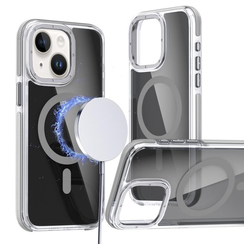 For iPhone 13 / 14 Magsafe Dual-Color Transparent Black Full Coverage Phone Case(Gray)