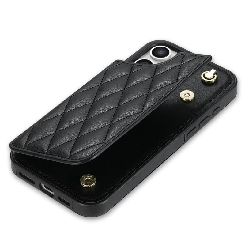 Θήκη τηλεφώνου με διπλή πόρπη και θήκες καρτών για iPhone 13 / 14, ρόμβος, με κορδόνι (Λευκό)