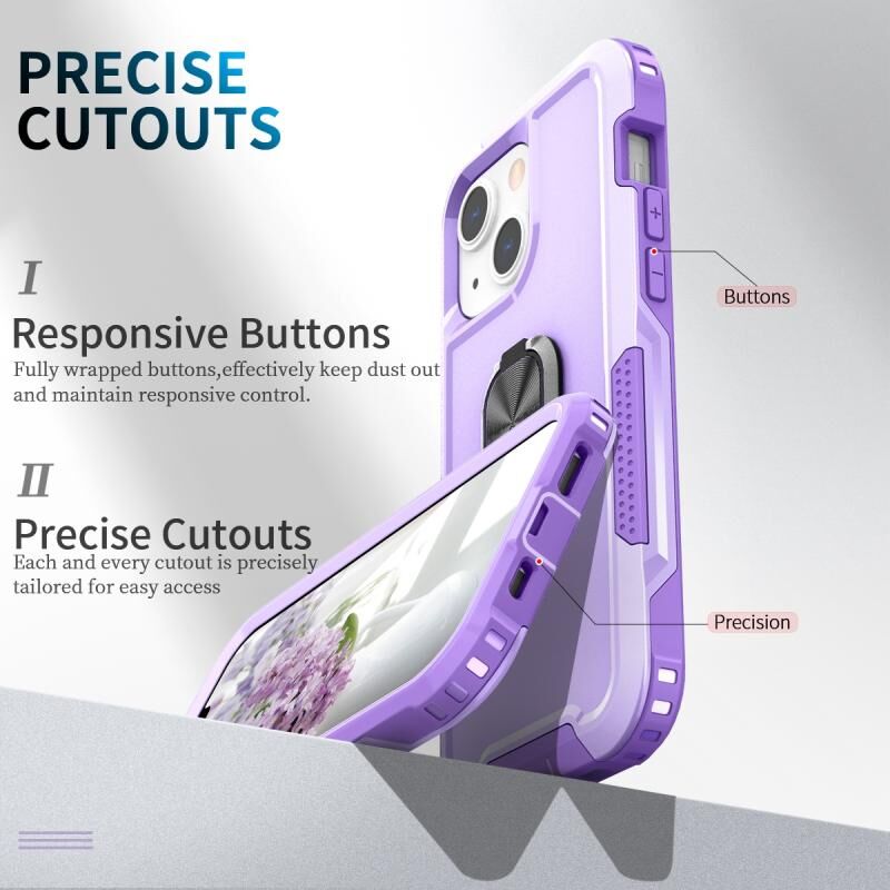Θήκη κινητού τηλεφώνου 3 σε 1 για iPhone 13 από PC + TPU με δακτύλιο στήριξης (Μέντας Πράσινο)