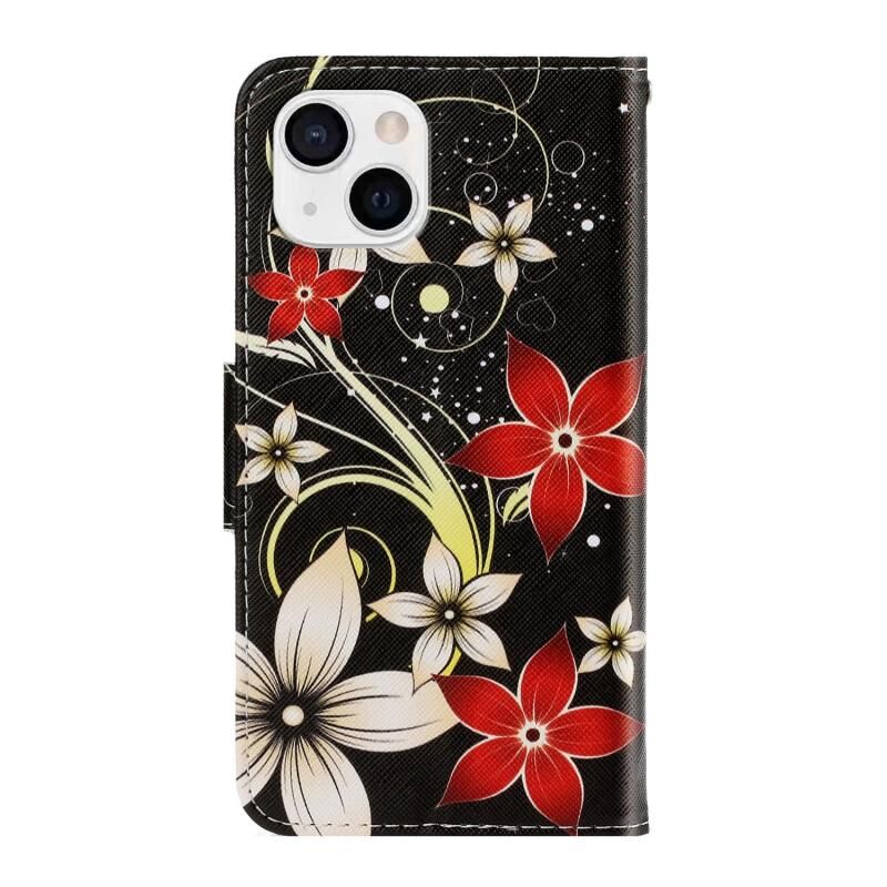 For iPhone 13 3D Colored Drawing Horizontal Flip Leather Phone Case(Red Flower)