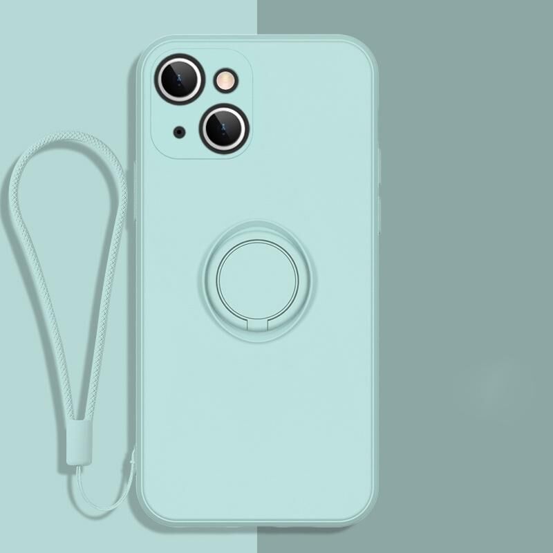 Θήκη προστασίας κινητού τηλεφώνου για iPhone 13 από υγρή σιλικόνη με όλα τα αξεσουάρ, με δακτύλιο στήριξης & κορδόνι (Ανοιχτό Κυανό)