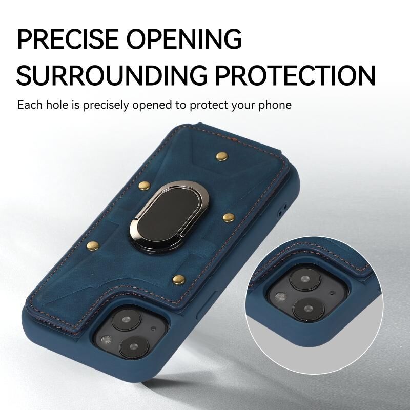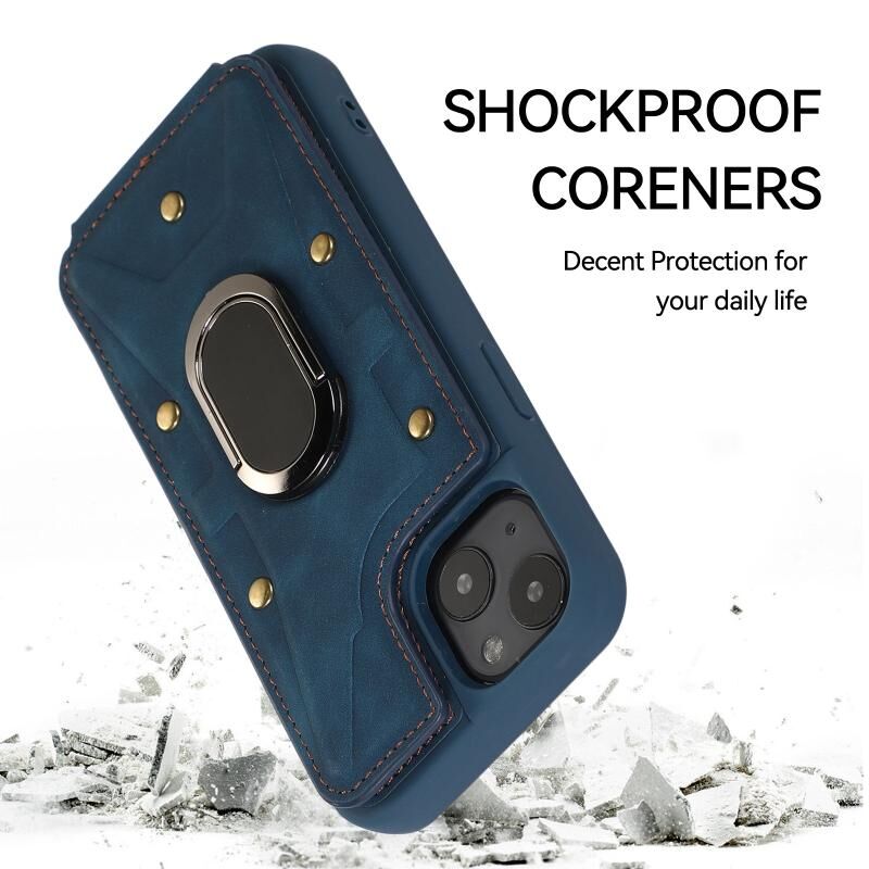 For iPhone 13 Armor Ring Wallet Back Cover Phone Case(Blue)