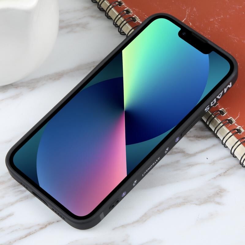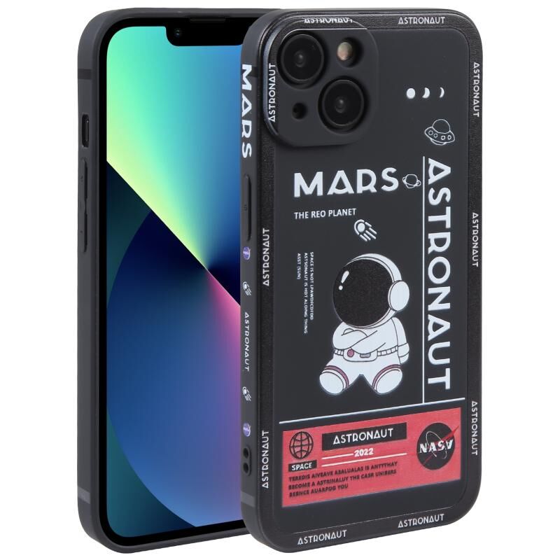 Θήκη τηλεφώνου για iPhone 13, σιλικόνης, με σχέδιο αστροναύτη και ευθείες άκρες (Αστροναύτης Άρη - Μαύρο)