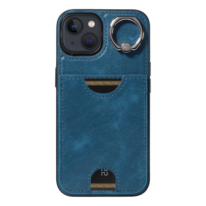 Θήκη τηλεφώνου για iPhone 13 με υφή μοσχαριού, θήκη κάρτας, δακτύλιος στήριξης (Κόκκινο)