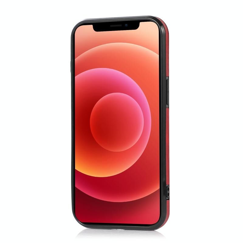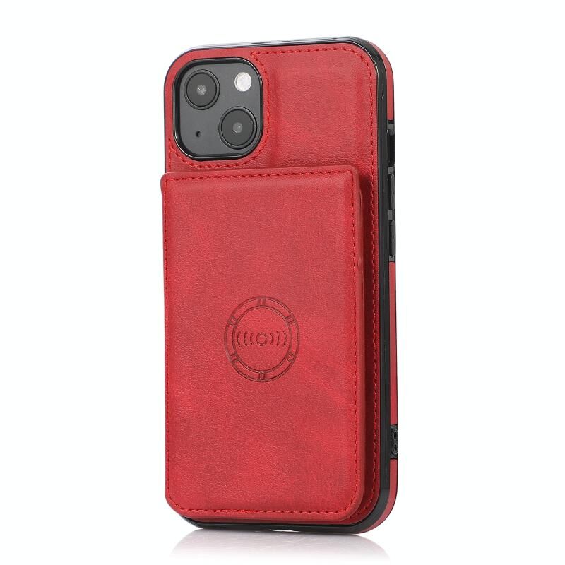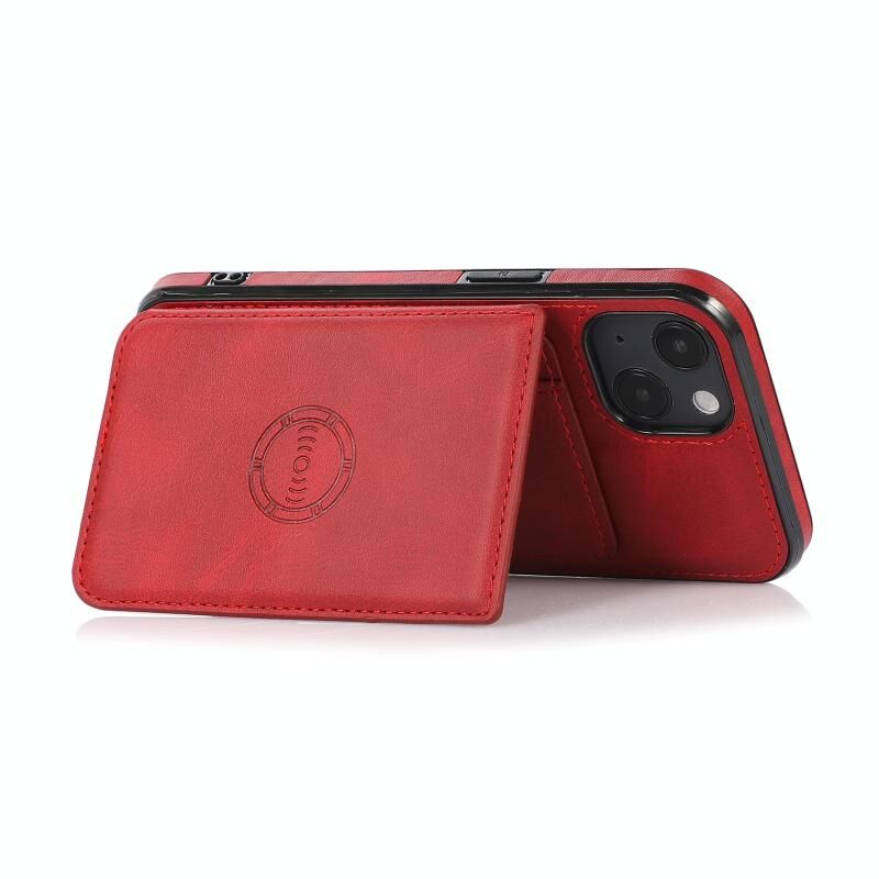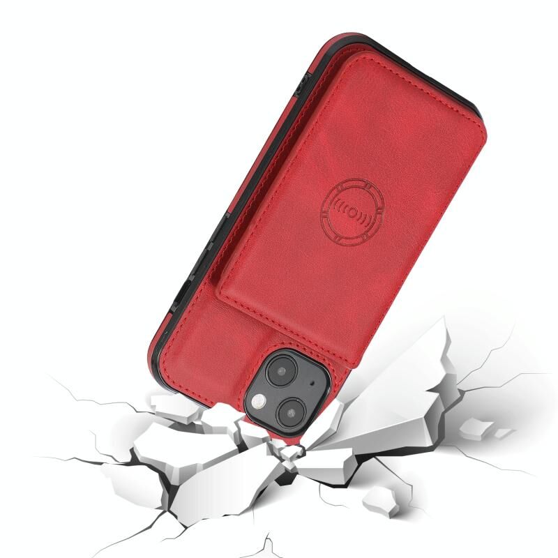 For iPhone 13 Calf Texture Magnetic Card Bag PU Shockproof Case with Holder & Card Slot(Red)