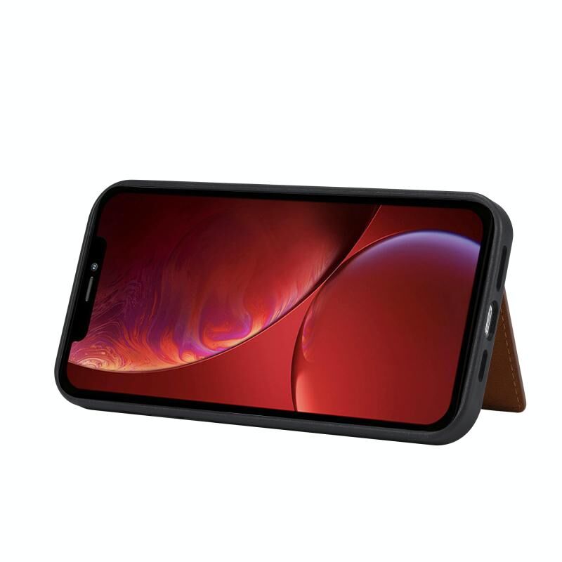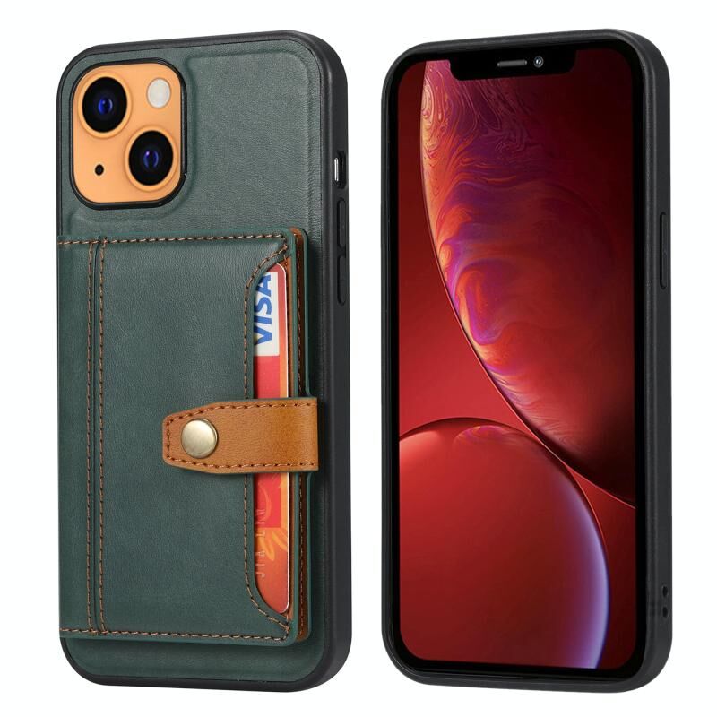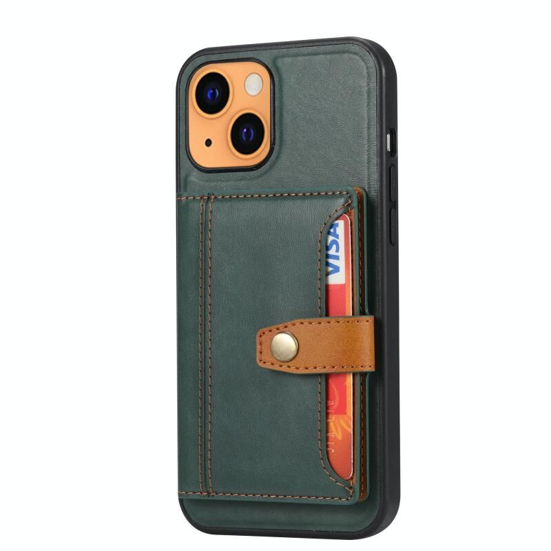 For iPhone 13 Calfskin Color Matching Shockproof TPU + PU Case with Holder & Card Slot(Green)
