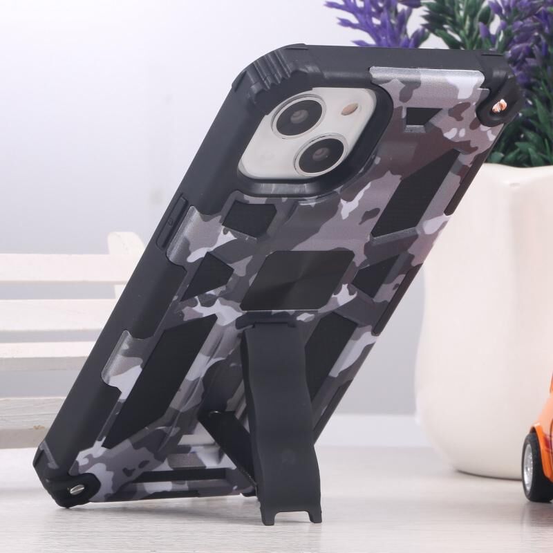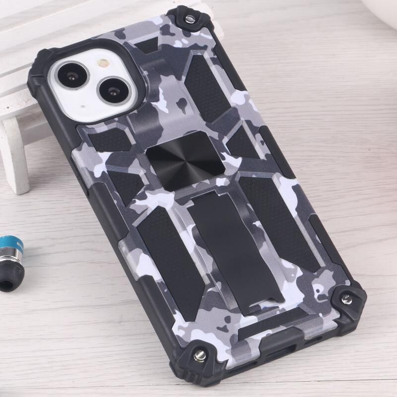 Θήκη κινητού τηλεφώνου με ενσωματωμένη βάση στήριξης, μαγνητική, από TPU + PC, με σχέδιο καμουφλάζ για iPhone 13 (Γκρι)