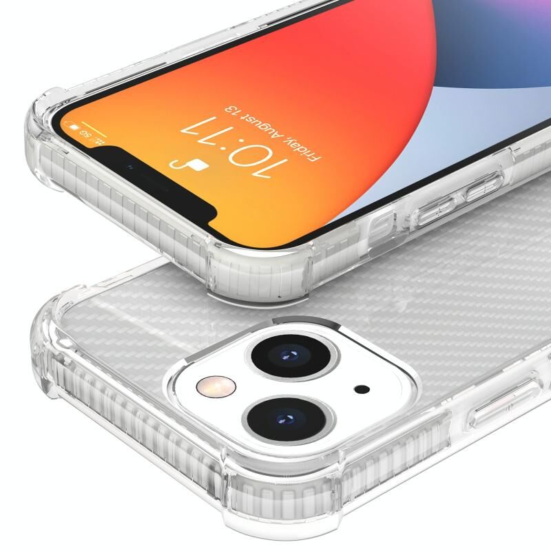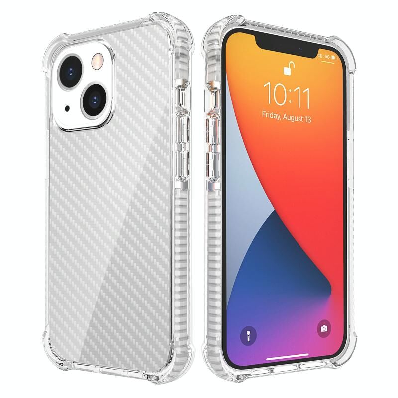 For iPhone 13 Carbon Fiber Texture Four-corner Shockproof Phone Case mini(White)