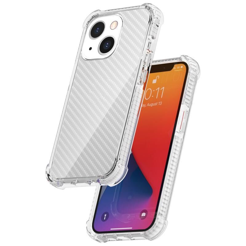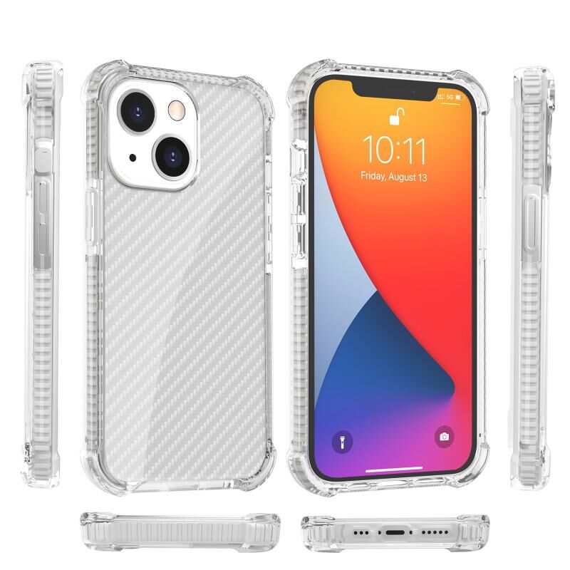 For iPhone 13 Carbon Fiber Texture Four-corner Shockproof Phone Case(White)