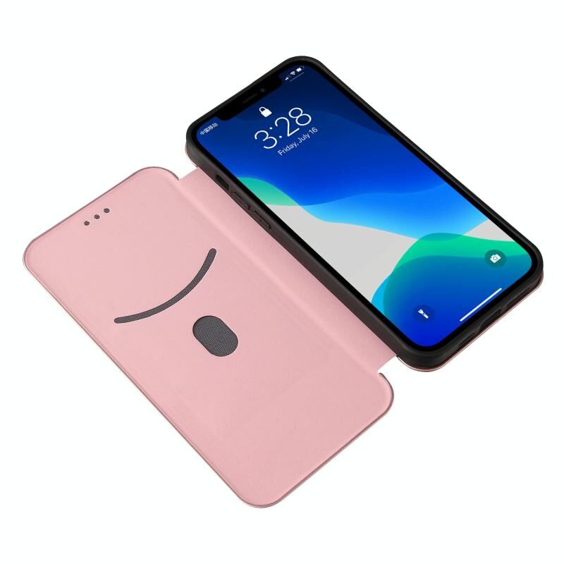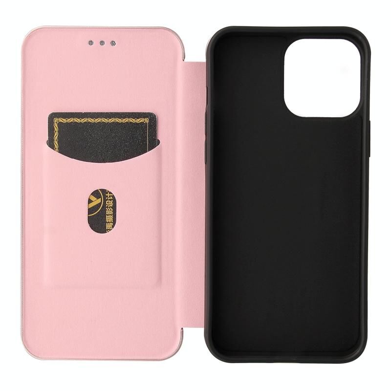 For iPhone 13 Carbon Fiber Texture Horizontal Flip TPU + PC + PU Leather Case with Card Slot(Pink)