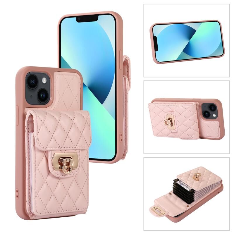 For iPhone 13 Card Slot Leather Phone Case(Pink)