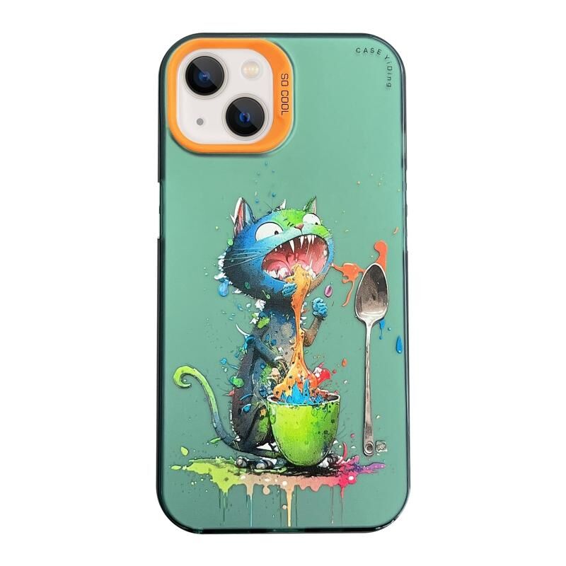 For iPhone 13 Cartoon Animal Graffiti PC + TPU Phone Case(Blue Cat)
