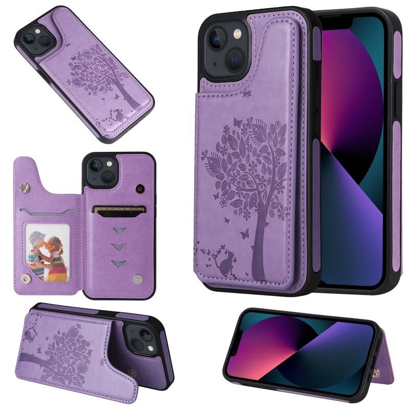 Θήκη τηλεφώνου για iPhone 13 με σχέδιο ανάγλυφου γατιού, αντικραδασμική (Μπλε)