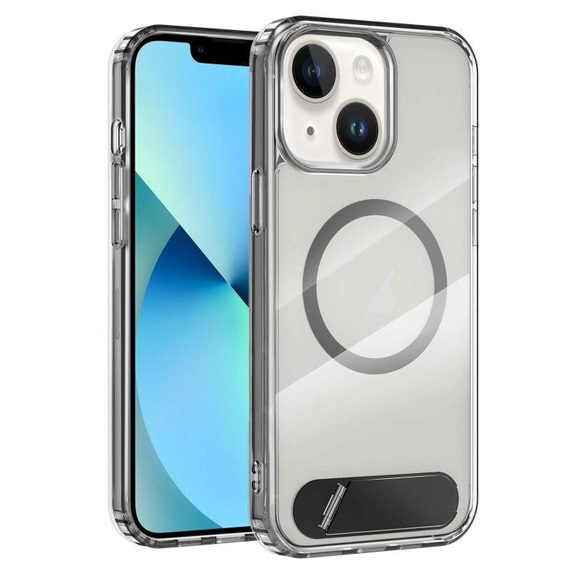 Θήκη τηλεφώνου για iPhone 13, διαφανής, υβριδική από PC και TPU με MagSafe και βάση στήριξης (Λευκό)