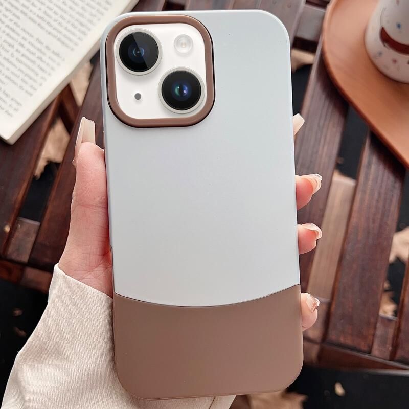 Θήκη κινητού τηλεφώνου 2 σε 1 για iPhone 13, Υβριδική από PC και TPU με αίσθηση δέρματος, σε ασημί και καφέ χρώμα.