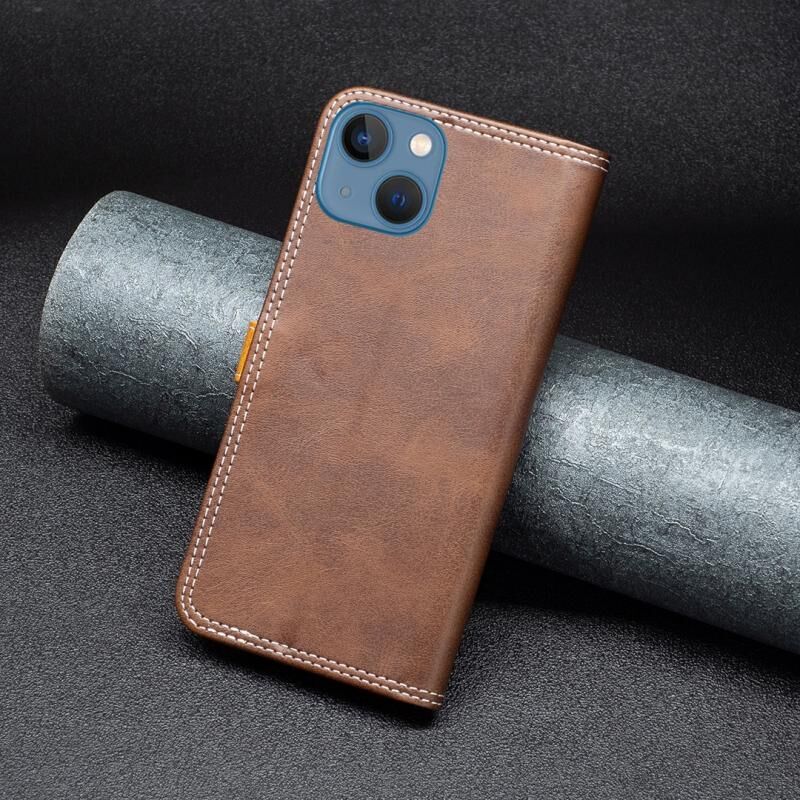 Θήκη δέρματος διπλής ραφής για iPhone 13 σε ταιριαστό χρώμα mini (Μαύρο)