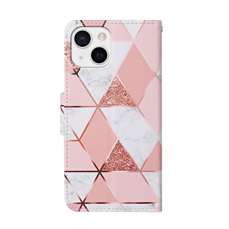 Θήκη δέρματος με σχέδιο πολύχρωμης ζωγραφικής και πτυσσόμενο καπάκι για iPhone 13 (Μάρμαρο)