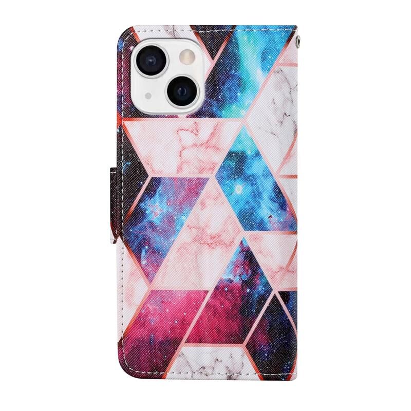 Θήκη τηλεφώνου από δέρμα με οριζόντιο άνοιγμα για iPhone 13 με έγχρωμο σχέδιο (Μαρμάρινο Αστρικό)