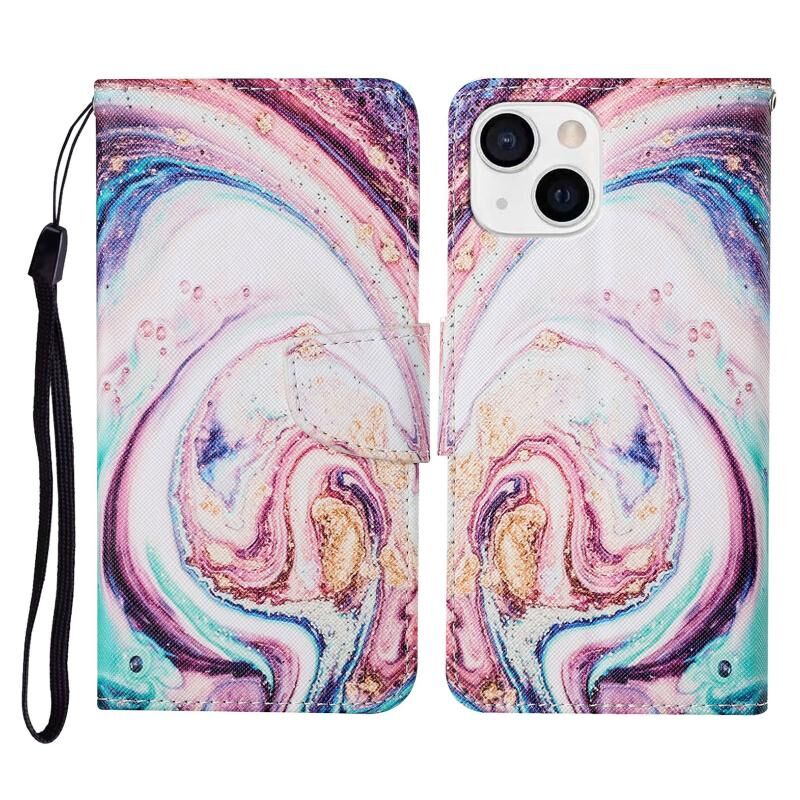 Θήκη τηλεφώνου από δέρμα με οριζόντιο άνοιγμα για iPhone 13 με έγχρωμο σχέδιο (Μάρμαρο Δίνης)