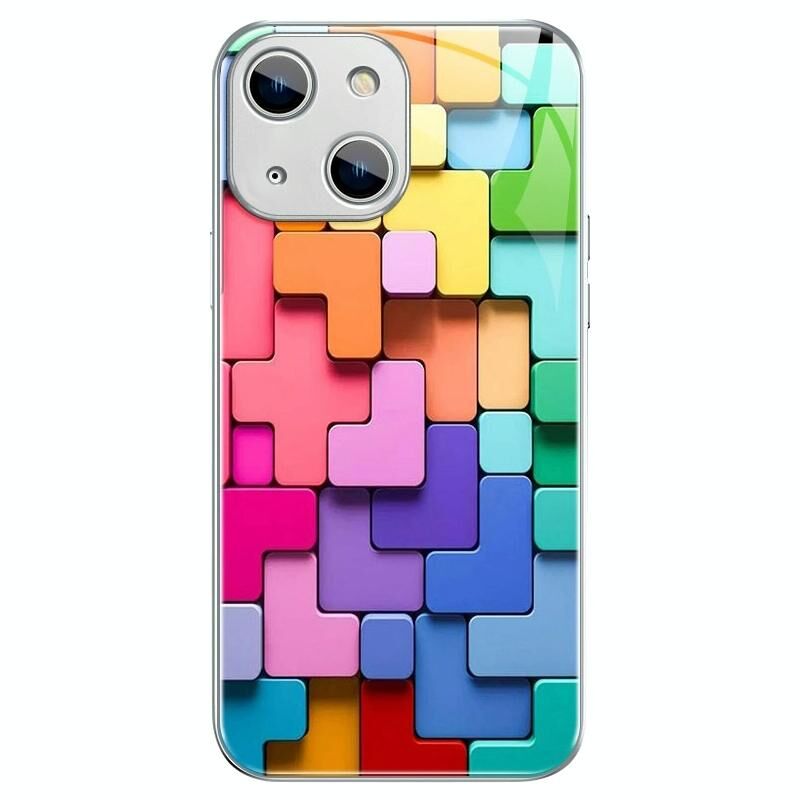 Θήκη τηλεφώνου από γυαλί αντικραδασμική για iPhone 13 με σχέδιο πολύχρωμων τουβλών (Ασημί)