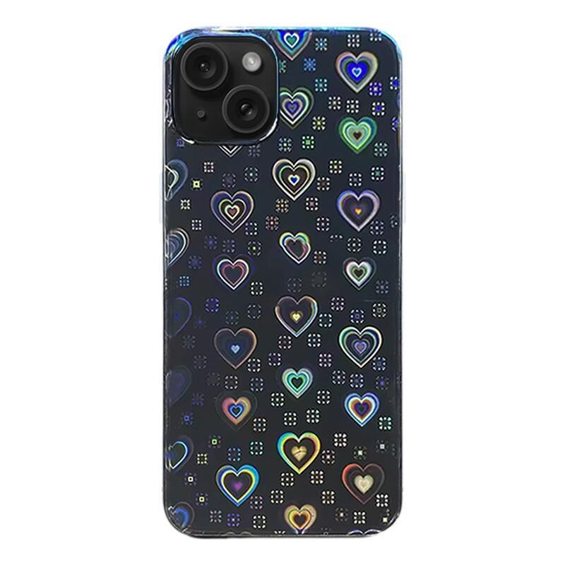 Αυτοκόλλητο κινητού τηλεφώνου για iPhone 13, διαφανές, πολύχρωμο (καρδιές)