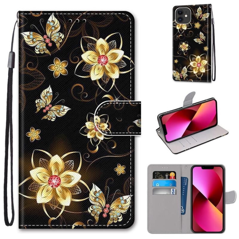 Θήκη για iPhone 13 με πολύχρωμο σχέδιο, υφή σταυρού, οριζόντια αναδίπλωση από δερματίνη PU με βάση & θήκες για κάρτες & πορτοφόλι & κορδόνι (Ροζ Λουλούδι, Γέφυρα του Πύργου)