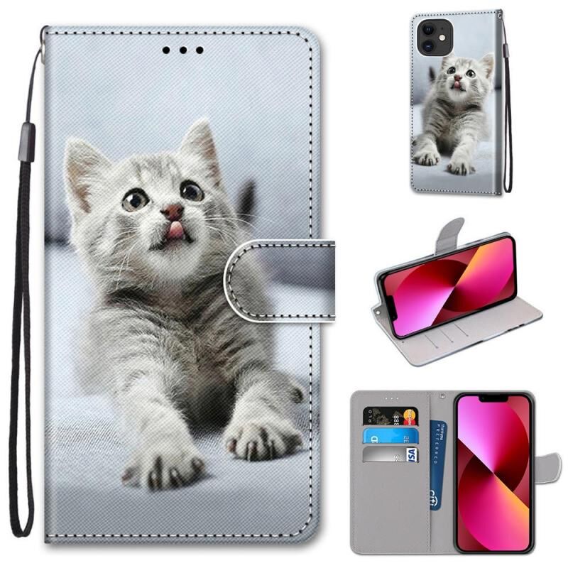 Θήκη για iPhone 13 με πολύχρωμο σχέδιο, υφή σταυρού, οριζόντια αναδίπλωση από δερματίνη PU με βάση & θήκες για κάρτες & πορτοφόλι & κορδόνι (Ροζ Λουλούδι, Γέφυρα του Πύργου)