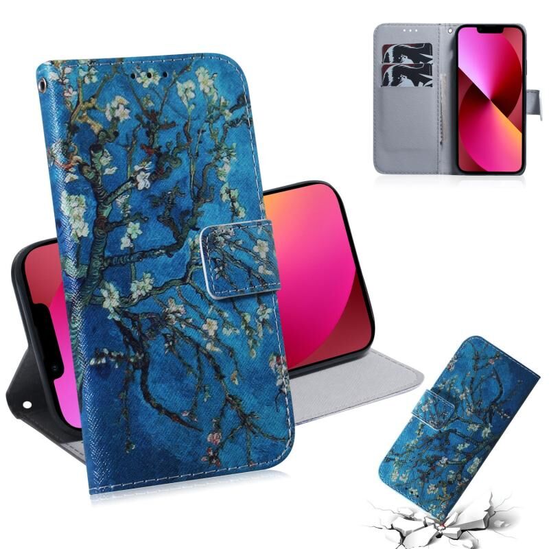 For iPhone 13 Coloured Drawing Horizontal Flip Leather Case, with Holder & Card Slots & Wallet(Apricot Flower)