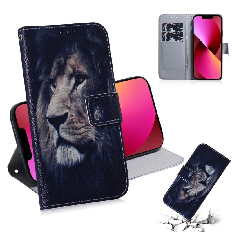 For iPhone 13 Coloured Drawing Horizontal Flip Leather Case, with Holder & Card Slots & Wallet(Lion)