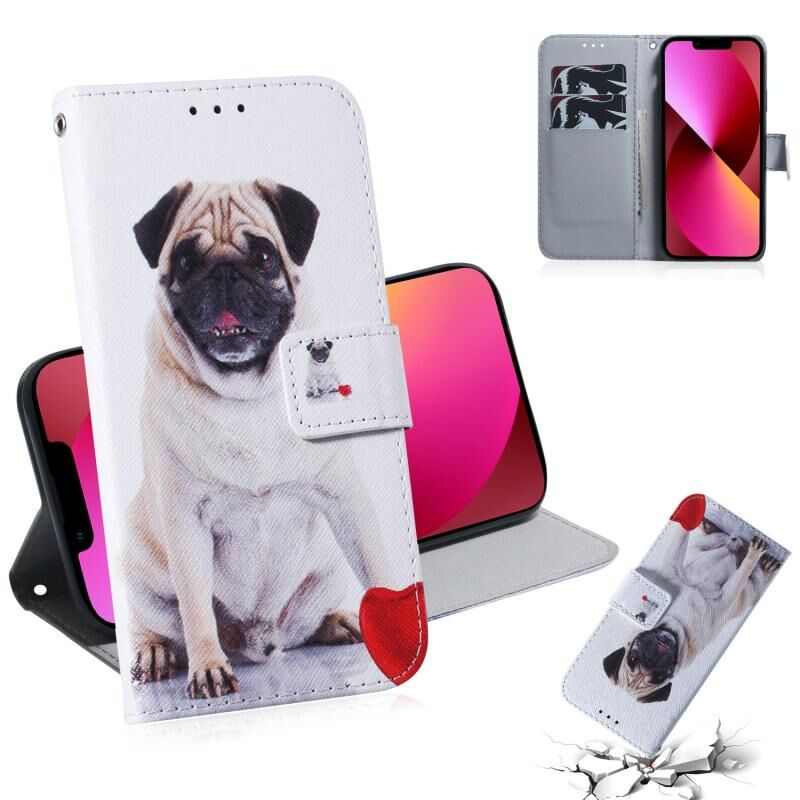 For iPhone 13 Coloured Drawing Horizontal Flip Leather Case, with Holder & Card Slots & Wallet(Pug)