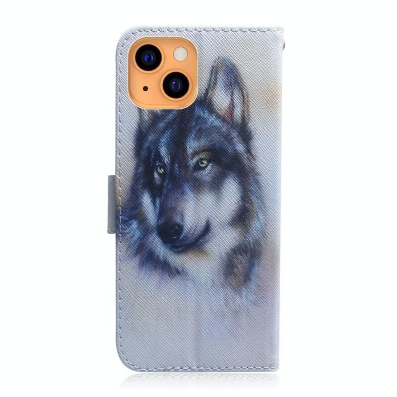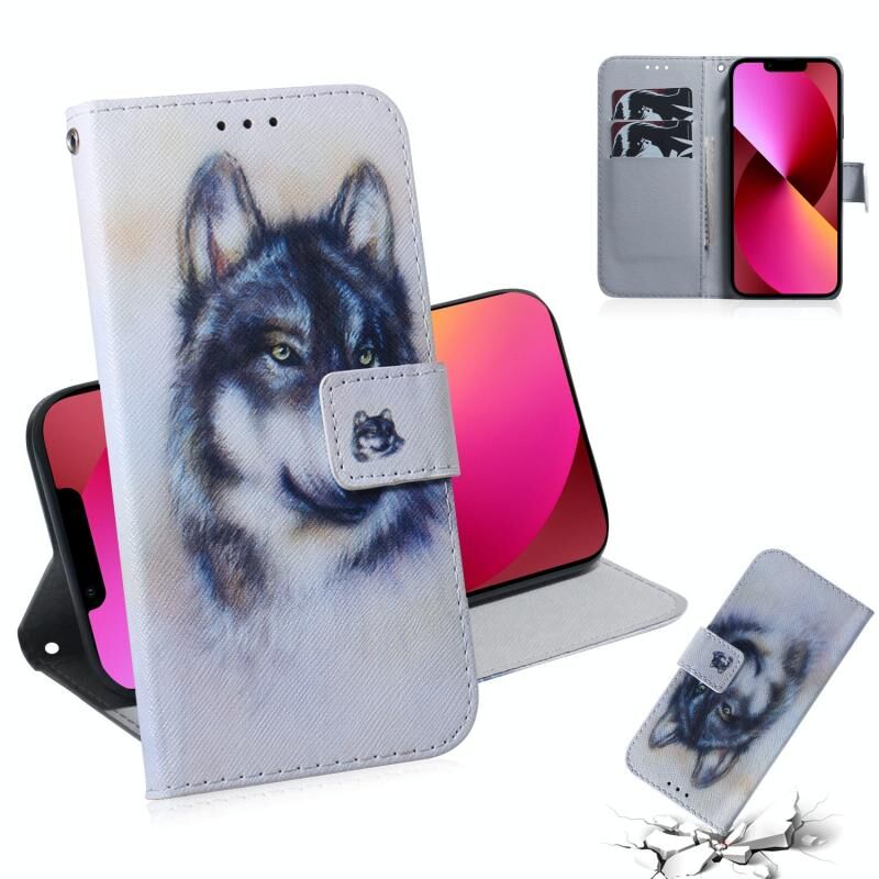 For iPhone 13 Coloured Drawing Horizontal Flip Leather Case, with Holder & Card Slots & Wallet(White Wolf)